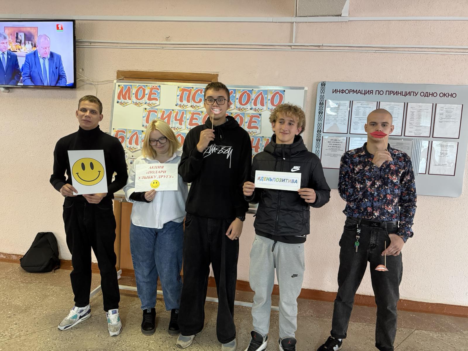 06.10.2025 в учреждении образования проведена акция «От улыбки станет всем светлей». Основной целью акции являлось создание позитивной, дружелюбной и теплой атмосферы в учреждении образования, а также укрепление эмоциональных связей между учащимися и педагогическим коллективом через выражение положительных эмоций и доброжелательности. В ходе акции учащиеся активно участвовали в мероприятиях, направленных на обмен позитивными эмоциями, например, раздавая друг другу и педагогам самодельные открытки с добрыми пожеланиями или смайлики, тем самым заметно улучшив эмоциональный фон среди учителей и сотрудников учреждения. Дополнительным эффектом акции стало формирование культуры доброжелательности и взаимопомощи, а также улучшение коммуникации в коллективе через простые, позитивные взаимодействия.