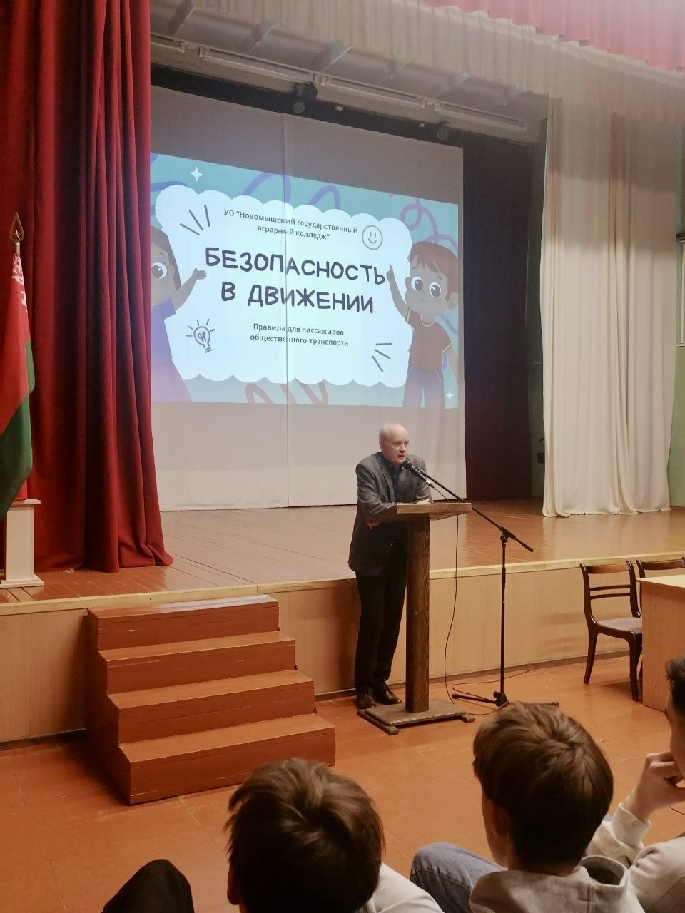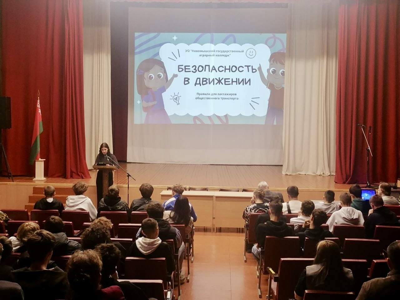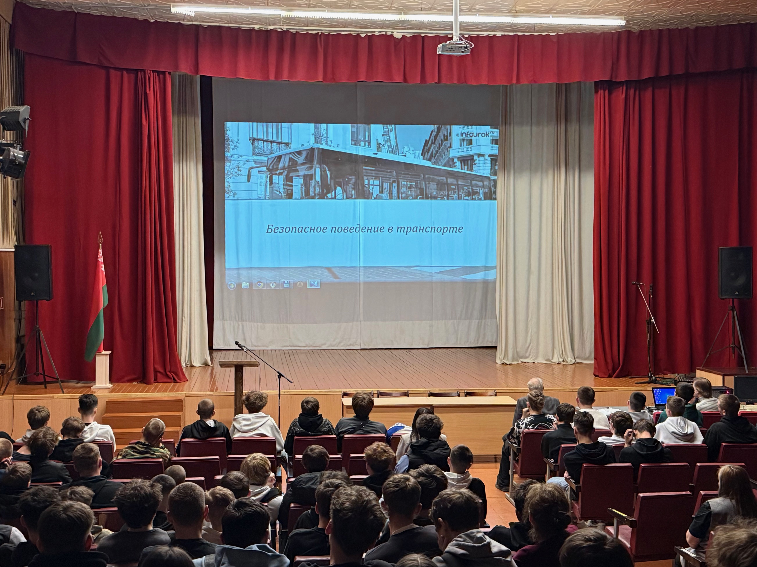 31 марта 2026 года состоялось информационно-профилактическое мероприятие на тему «Безопасность в движении: правила поведения для пассажиров общественного транспорта». В ходе мероприятия участники еще раз обсудили общеустановленные правила проезда во всех видах общественного транспорта, включая автобусы. Особое внимание было уделено вопросам культуры поведения и речи, а также правилам этикета. В качестве приглашенного гостя выступил начальник отряда городских перевозок Автобусного парка города Барановичи Радченко Дмитрий Дмитриевич, который обобщил и подытожил установленные правила перевозки пассажиров и поведения в общественном транспорте. Учащиеся активно задавали вопросы, проявляя интерес к теме и стремление лучше понять важность соблюдения правил безопасности. Мероприятие стало важным шагом в формировании культуры безопасного поведения на дорогах и в общественном транспорте, способствуя повышению осведомленности среди молодежи.