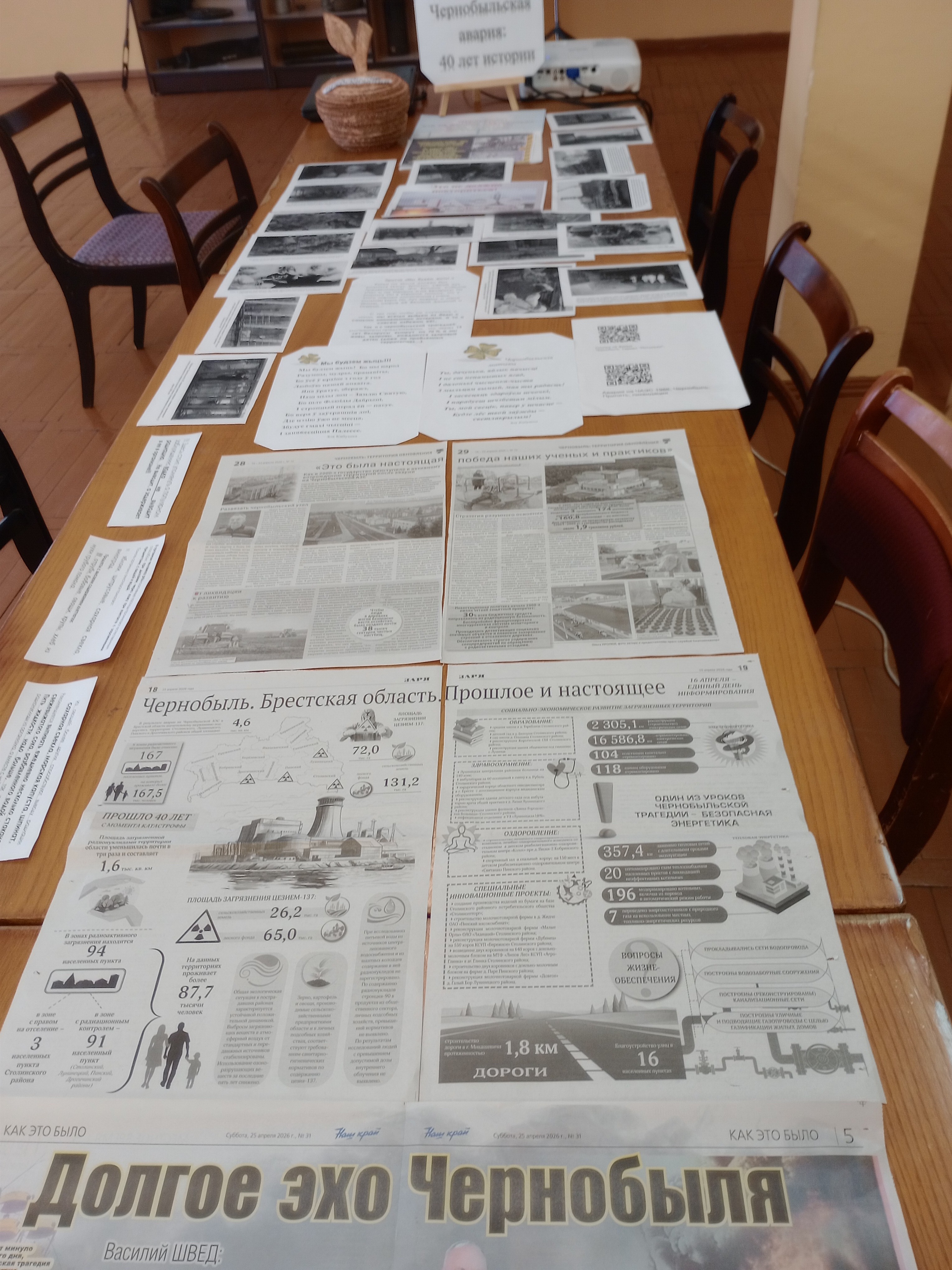 29 апреля в библиотеке колледжа состоялась встреча у выставки «Чернобыль − 40 лет истории». Проводилась она в форме разнопланового экологического ликбеза «Мы будем жить до сотни лет, не зная горестей и бед!». Вниманию ребят ─ презентация «Береженого Бог бережет» (радиация в быту и способы борьбы с ней). Особый акцент был сделан на опровержении популярного заблуждения о том, что алкоголь выводит радиацию − напротив! задерживает!.
