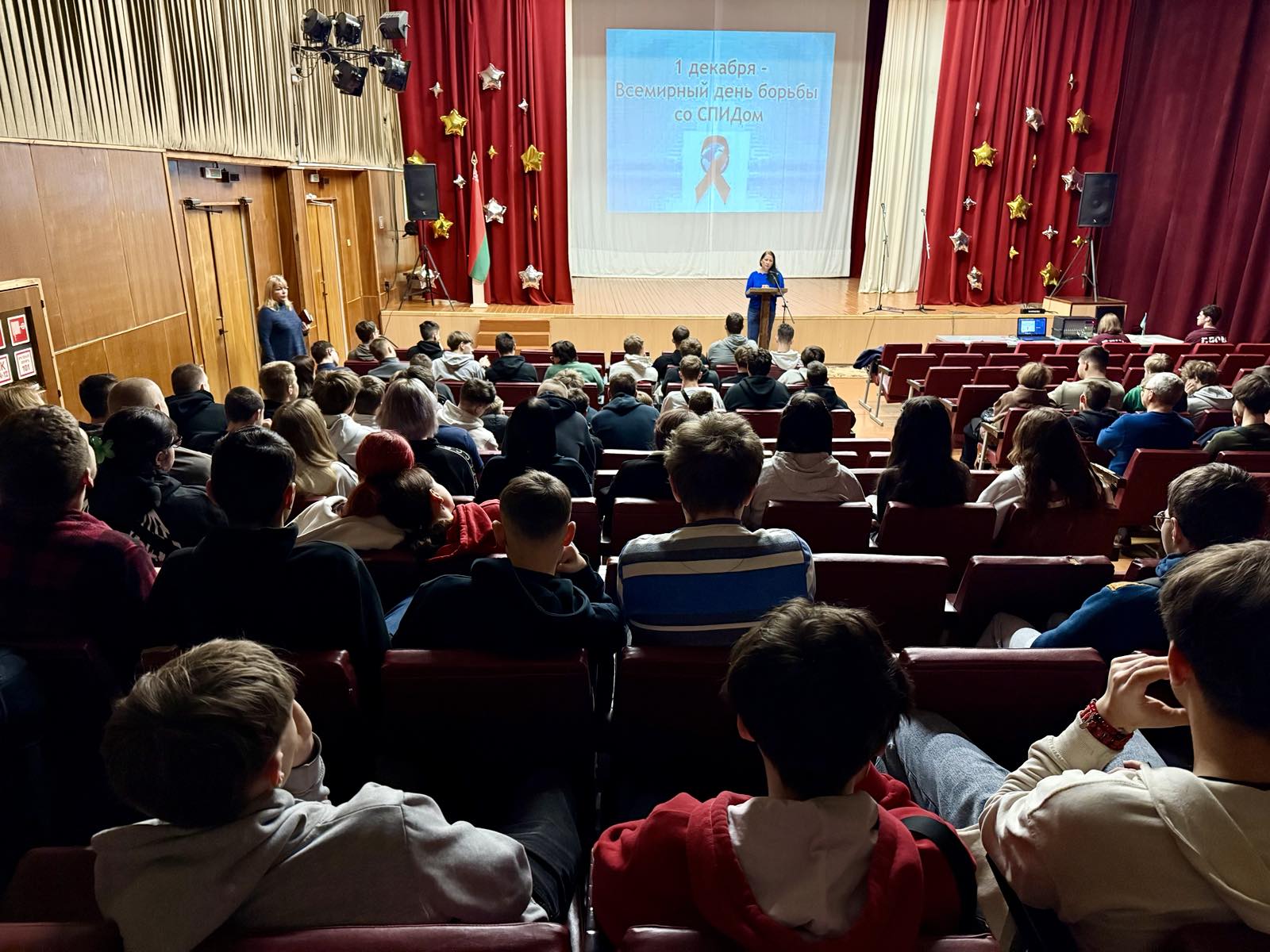 1 декабря 2025 года в актовом зале колледжа прошла беседа-обсуждение «Украденное СПИДом поколение». В ходе мероприятия медицинский работник Череповицкая Елена Михайловна рассказала присутствующим, что такое ВИЧ/СПИД, как передается ВИЧ-инфекция и в каких случаях заразиться невозможно, о ситуации со СПИДом, о проблемах ВИЧ-инфицированных людей, о том, как обезопасить себя от этого заболевания. Заместитель директора по учебно-воспитательной работе Васьковская Светлана Михайловна напомнила учащимся, о том, как важно вести здоровый и активный образ жизни и помнить, что наше здоровье и будущее зависят только от нас.
