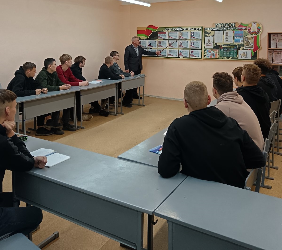 19.11.2025 года в рамках плана мероприятия работы руководителя по военно-патриотическому воспитанию, С.А.Батуринец провел круглый стол «Герои мирного времени» с учащимися третьего курса.