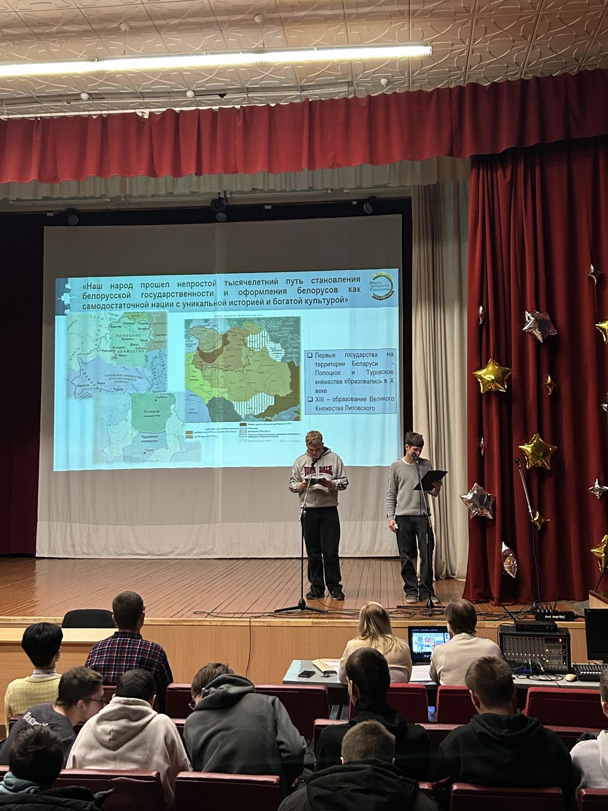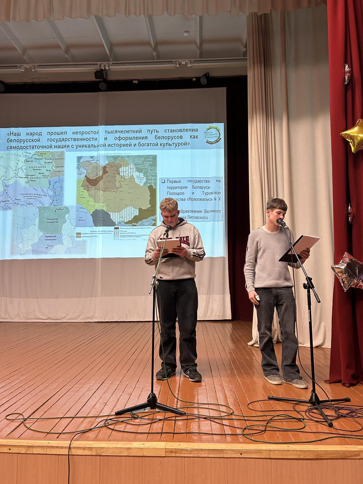На мероприятии были освещены моменты истории от первых государственных образований на белорусской земле до современной и независимой Беларуси,