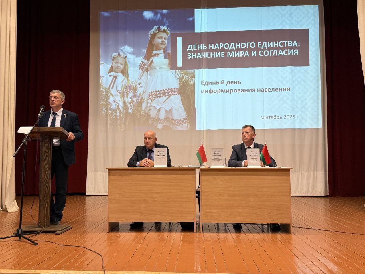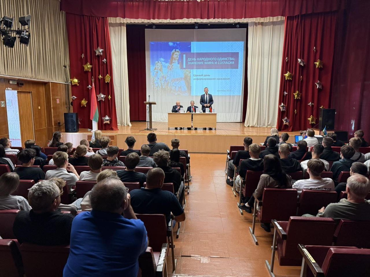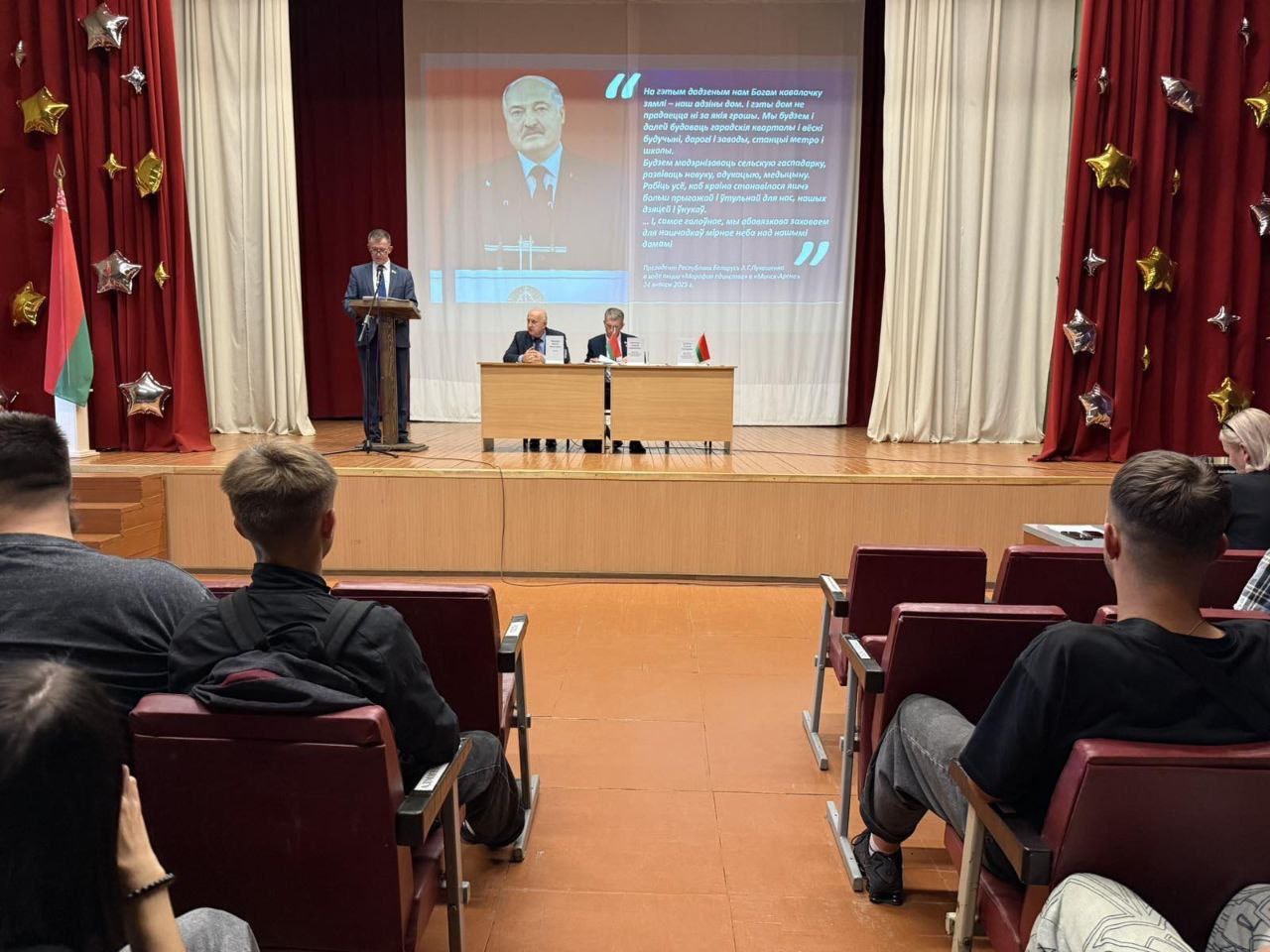 22 сентября 2025 года депутат Палаты представителей Национального собрания Республики Беларусь Хлебович Георгий Евгеньевич и председатель Барановичского районного Совета депутатов Ярёменко Алексей Геннадьевич встретились с учащимися Новомышского аграрного колледжа в формате открытого диалога.