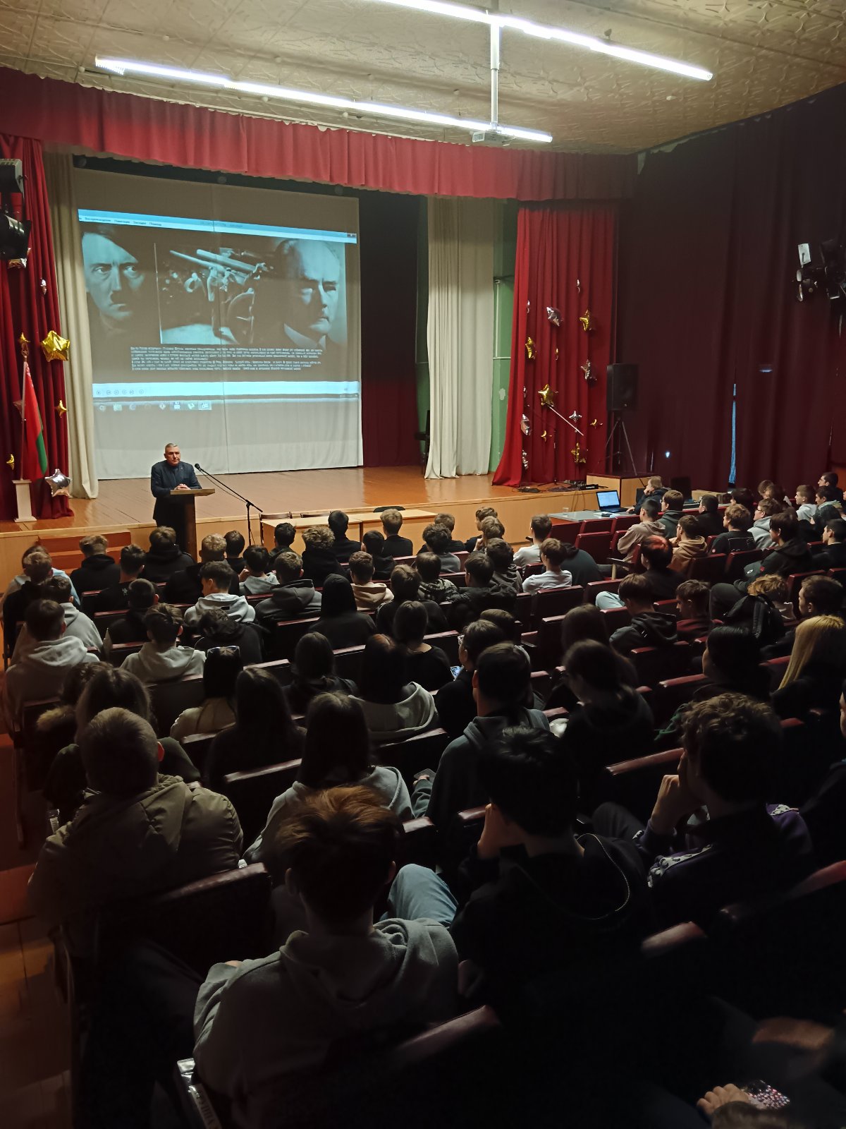 13.02.2026 года в рамках плана мероприятий по военно-патриотическому воспитанию, руководитель по ВПВ Батуринец С. А. провел для учащихся 1,2,3, курсов мероприятие о геноциде населения Белорусси во время немецко-фашисткой оккупации "Угон мирного населения на принудительные работы в Германию".