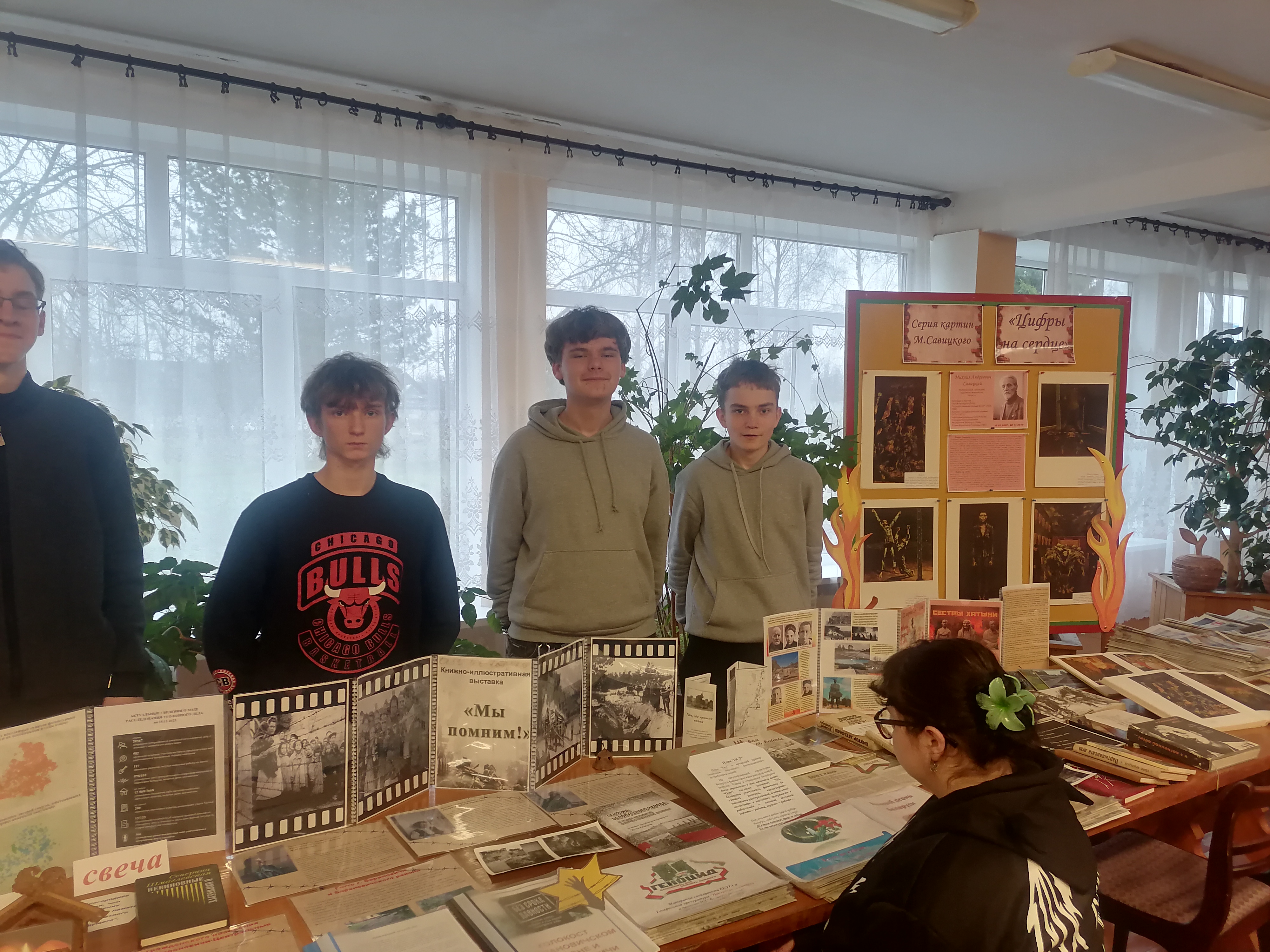 Во время обзора присутствующие смогли погрузиться в историю тех трагических лет, познакомившись с книгой «Геноцид белорусского народа. Лагеря смерти», с подборкой материалов спецпроекта БЕЛТА и Генеральной прокуратуры «Последние свидетели» и проекта ИД «Беларусь сегодня» при поддержке Генпрокуратуры «Это настоящий геноцид!» и с серией картин белорусского художника Михаила Савицкого «Цифры на сердце».