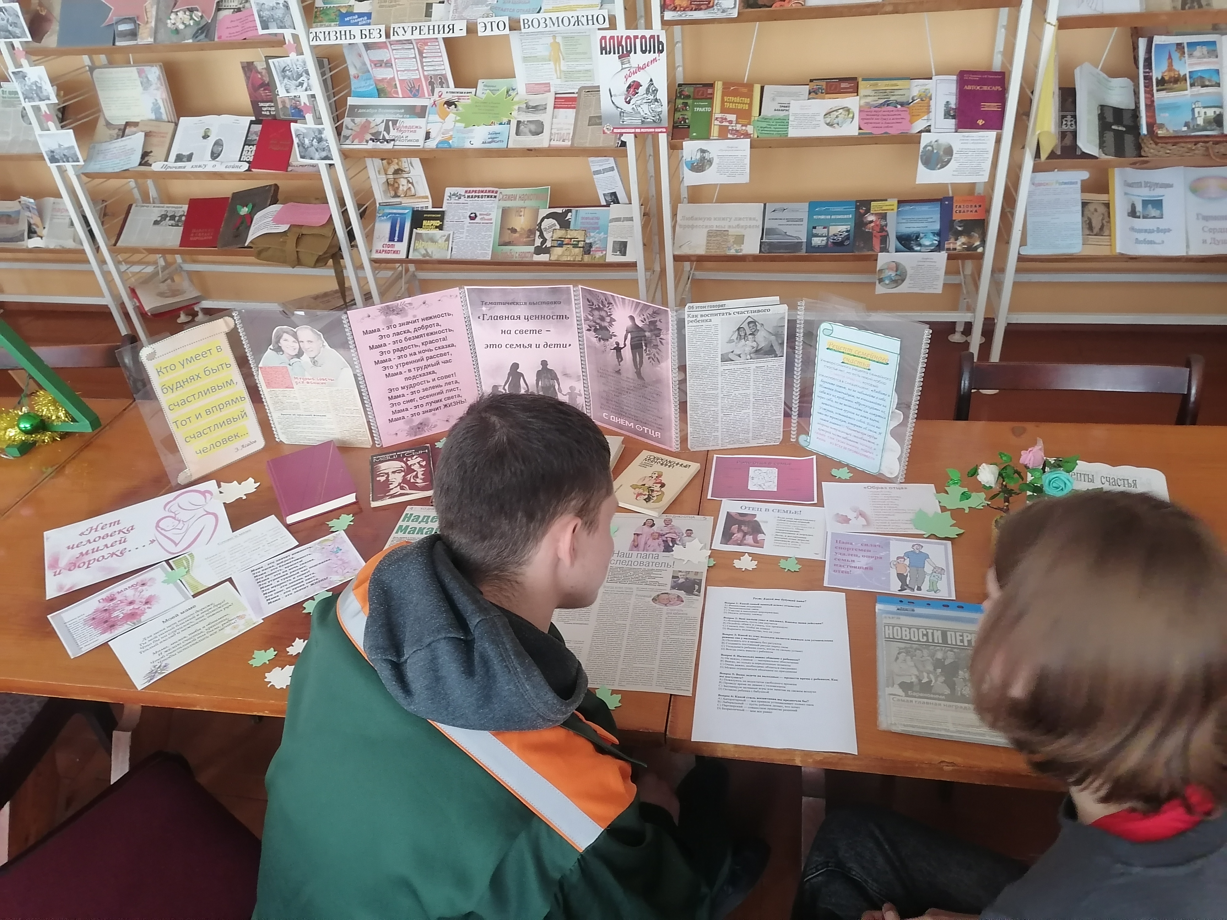 Разговор шел о непростой миссии отца семейства, о роли мамы в микроклимате семьи. «Мудрые советы для будущих женщин», «Как воспитать счастливого ребенка», «Слово о маме», «Стихи для тебя, любимой», «Рецепт семейного счастья», «Образ отца», «Роль отца в семье», «Рецепты простого человеческого счастья» − вод далеко не весь обзор материалов выставки. И все для того, чтобы помочь, подсказать будущим родителям, как стать счастливыми в семейной жизни. В заключении для участников встречи − тэст «Каков ты, будущий папа?»
